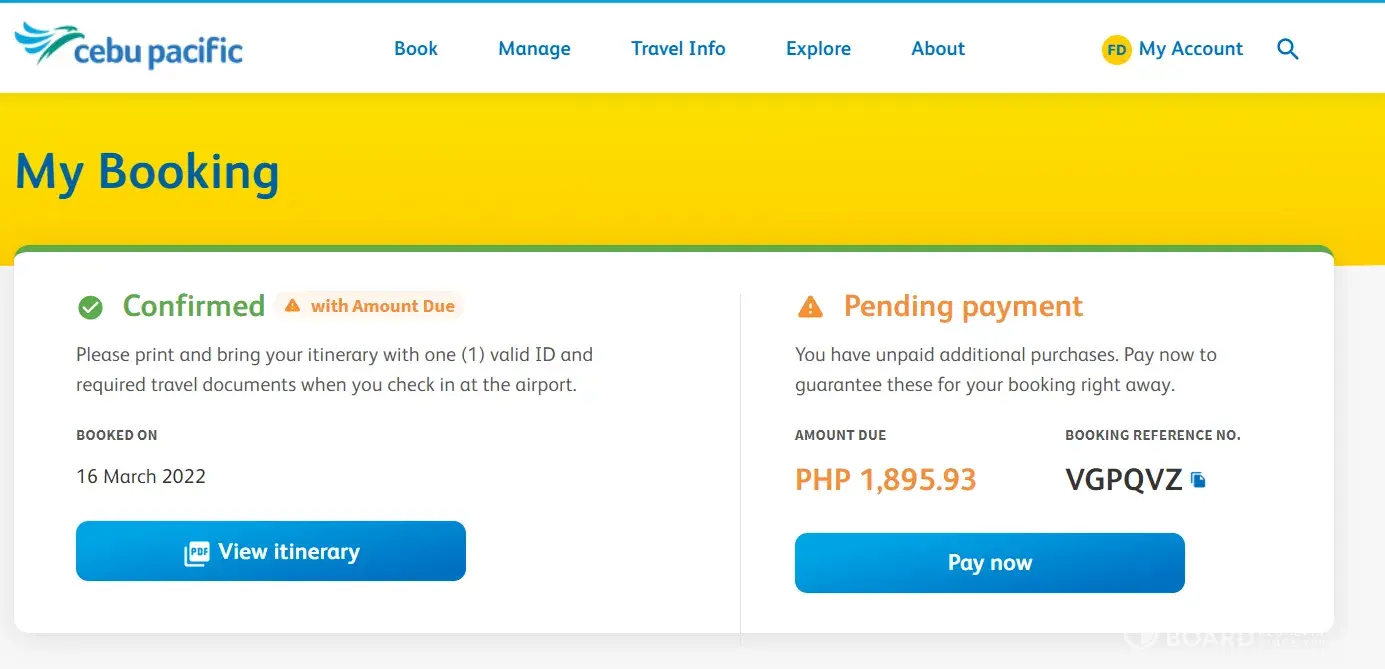 Nagtry akong maglagay ng baggage sa ticket ng Father ko last May 2, 2022. Nung andun na ako sa payment ayaw tanggapin yung credit or debit card dahil sabi nyo naka disable na credit/debit card payment for our secuties that's why napagdesisyonan namin na ipacargo na lang yung baggage nila kahit mas mapapamahal kami kasi no choice na kami kasi credit card lang ang mode payment na mayrun ako dun sa mga option na mayrun ako. In my surprise at the airport sinisingil nyo ung di nagproceed na baggage? Like what? Kaya nga kami nagpakargo kasi ayaw tanggapin ng site nyo ung payment ko tapos naka disable pa yung remove items nyo para di na matanggal ung baggage na nirequest. Sinabi namin sa desk na tanggalin na ung nakahang na baggage kasi nagpa cargo na kami sa airlines nyo but they refuse to do it! Sinabi pa na kapag di binayaran eh di sila makakasakay ng eroplano tapos pupuntahin yung father ko sa ticketing office to fix it. Without any consideration na may kasama siyang senior citizen na naka wheel chair. Where is the consideration cebu pacific? Unang una site nyo ang nagkaproblema upon payment. Mas napamahal pa nga kami kasi nag cargo kami kasi we don't have any choice gawa ng problem sa site nyo.