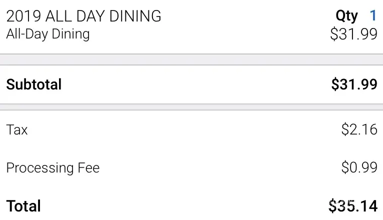 Requesting money back on all day dining.