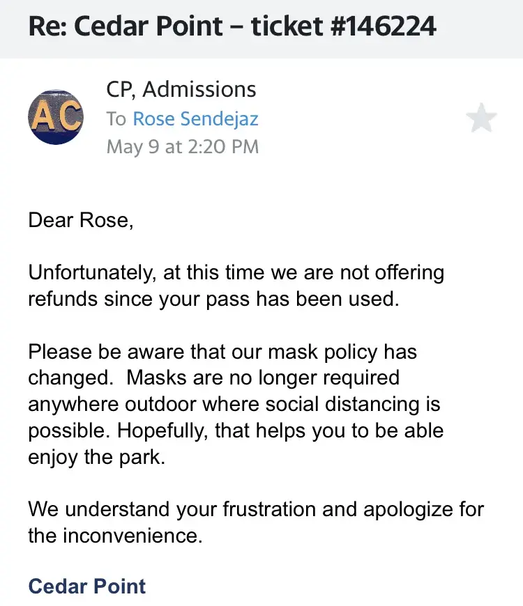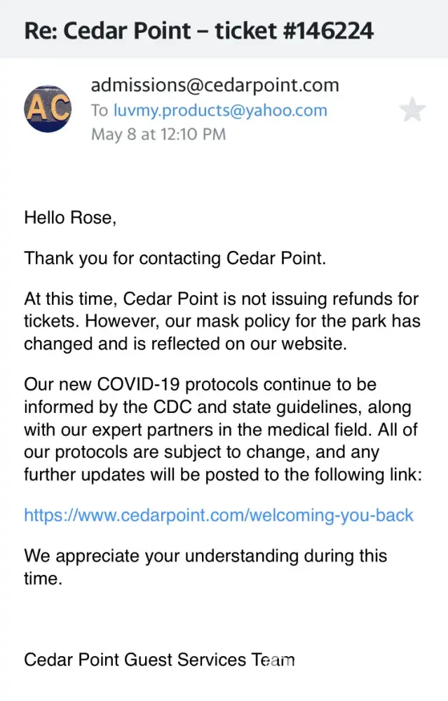 Not able to visit park because of Covid, Cedar Point can care less!