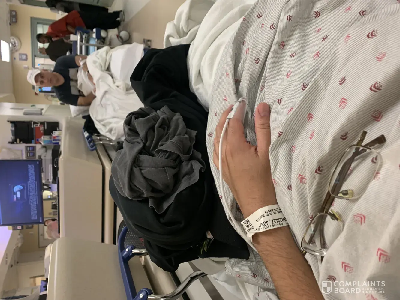 I'm writing a complaint from the care I received on Tuesday 10/24-10/25. I went to the ER on Tuesday evening because I was having a hard time breathing and my left arm was shaking and I had a temperature of 101. . I begged and pleaded with the receptionist and the RN that I was in so much pain!