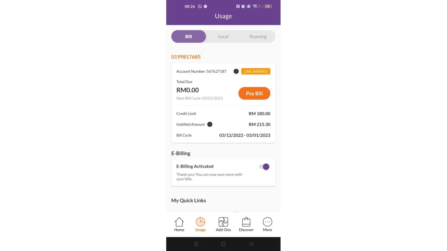 I contacted the customer service via whatsapp on 31/7/2023 after I came back from Saudi Arabia and asked about the bills.