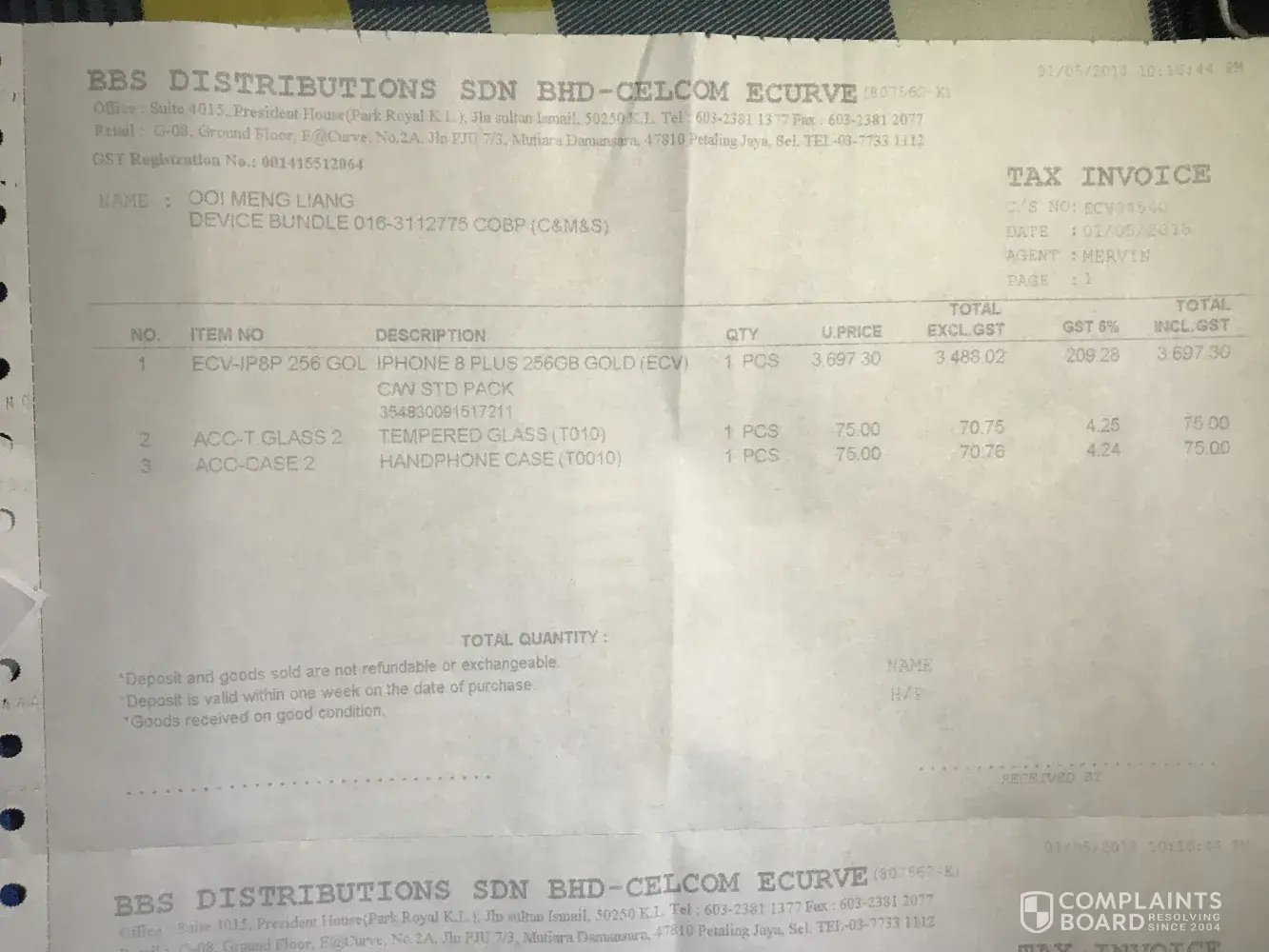 I bought a new iPhone8 Plus 256gb from BBS Distributions Sdn Bhd (Celcom authorised reseller) which is located in eCurve. Acknowledging that most telco companies will not accept faulty phone returns after they walked out the premise, this case happened according to the sequence as below;