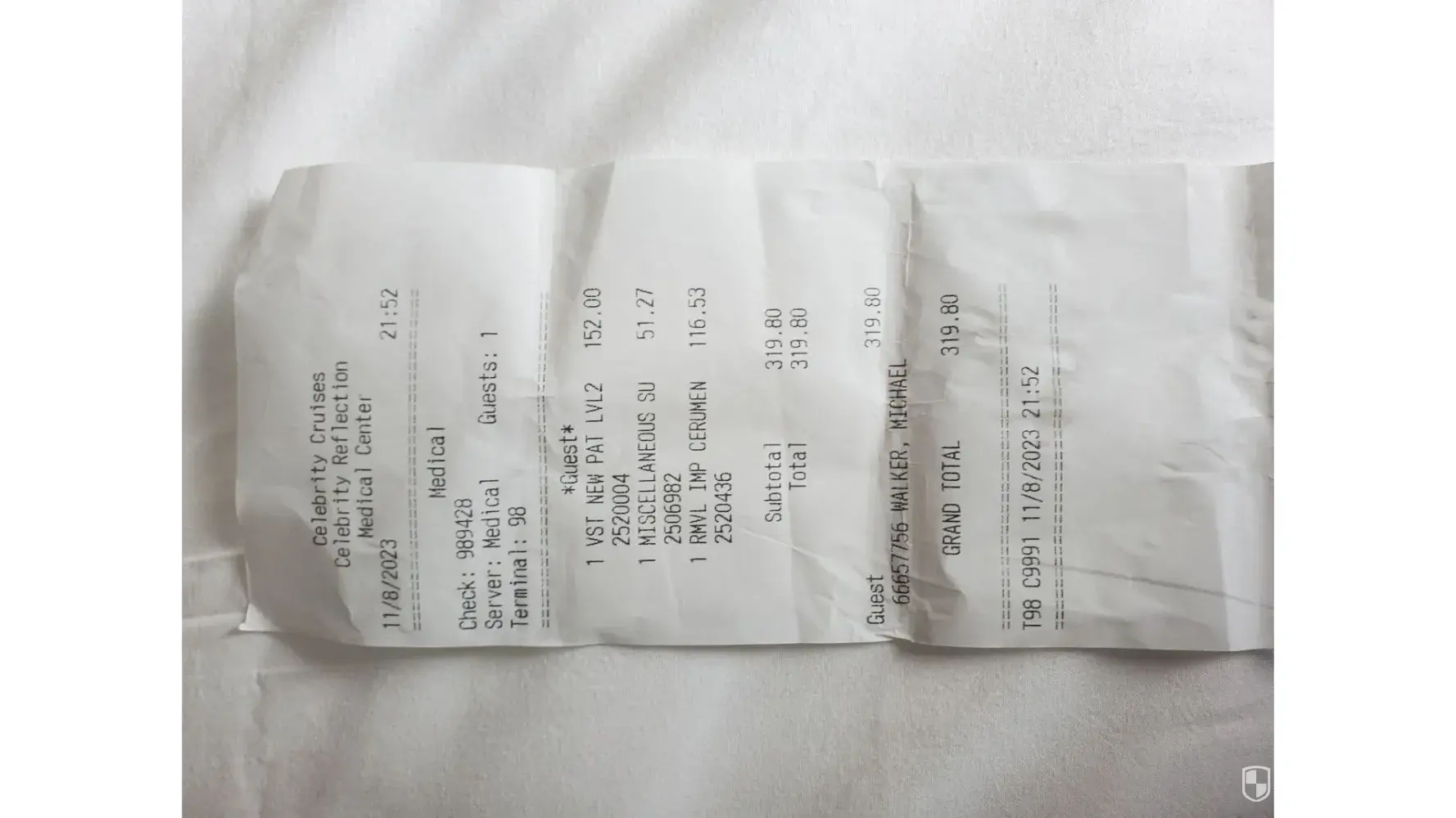 My Cruise is on the Celebrity Reflection Nov 2 to 12 2023. Yesterday I went to medical for ear wax irrigation. The nurse Mphatsoe Mpho to me the cost of $150. I questioned him about the coat and I was asaured irrigation included. Today I got a bill for $365. When questioned Joy Ragandang insulted me by telling me I did not understand Mpho. Then went to make complaint at Guest Relations and they calledmedical to arbitrate bill.