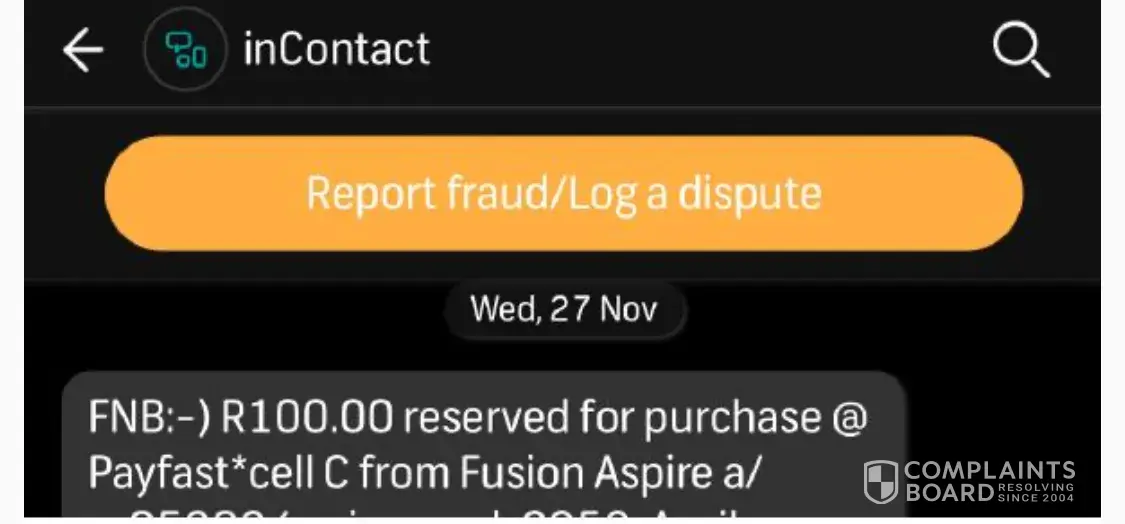 Desired outcome: R100 to be refunded to my FNB as I will be changing service providers after all this bad experience