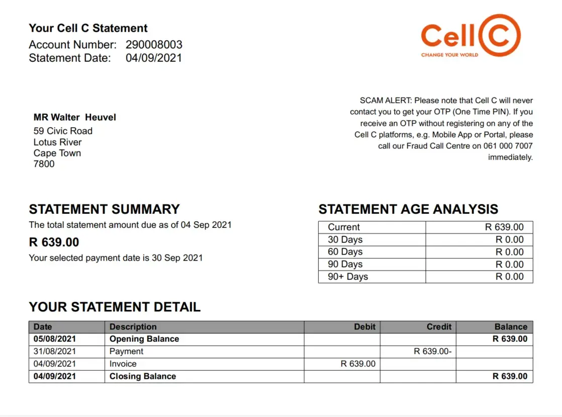 Last month August during a credit application, my bank informed me to clear an arrears issue at ITC with Cell C, I went the Cell C outlet to address the issue, only to receive an email 2 days later from Cell C informing me that they don't provide paid up letters for active accounts.