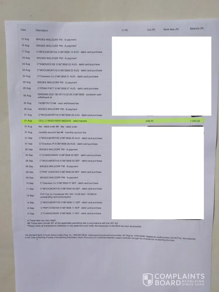 Cell C Payments and debits
