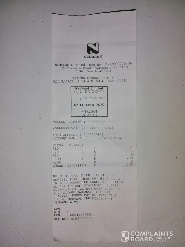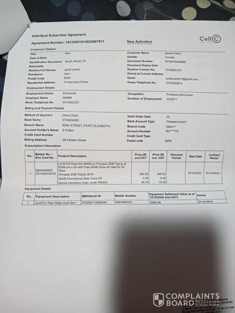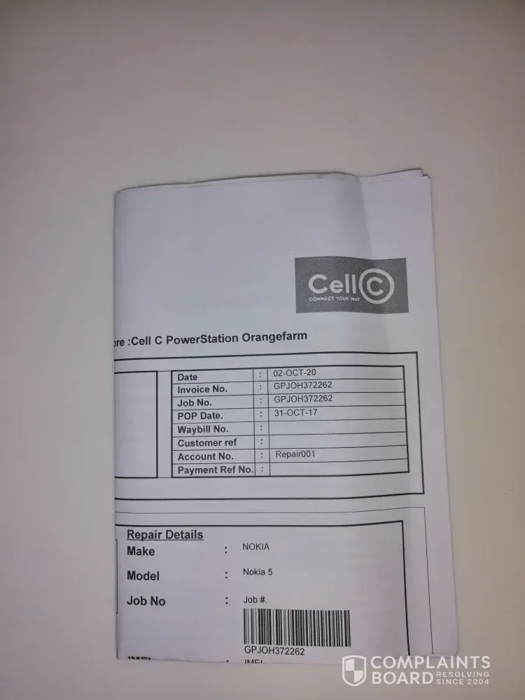 This happened on the 28/10/2020, I went and registered the claim at cell c fourways mall branch on the 29/10/2020.