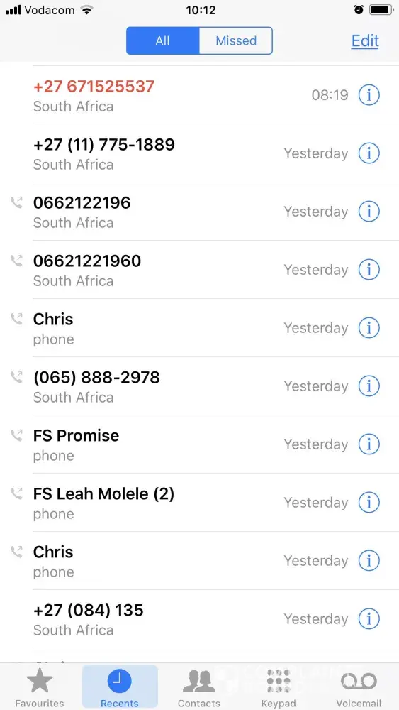 I have attached screen shot of my phone, there's no calls from her except the lady from Call center after 17h30 on 18 Feb 2019.
