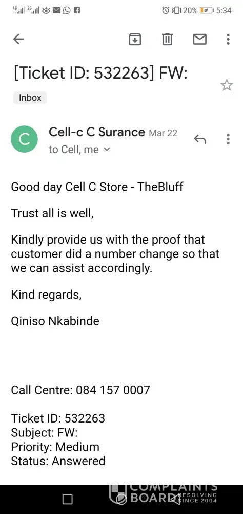 I will take this up with legal route until Cell C formally apologies and compensate for my time and mental suffering to resolve everything.