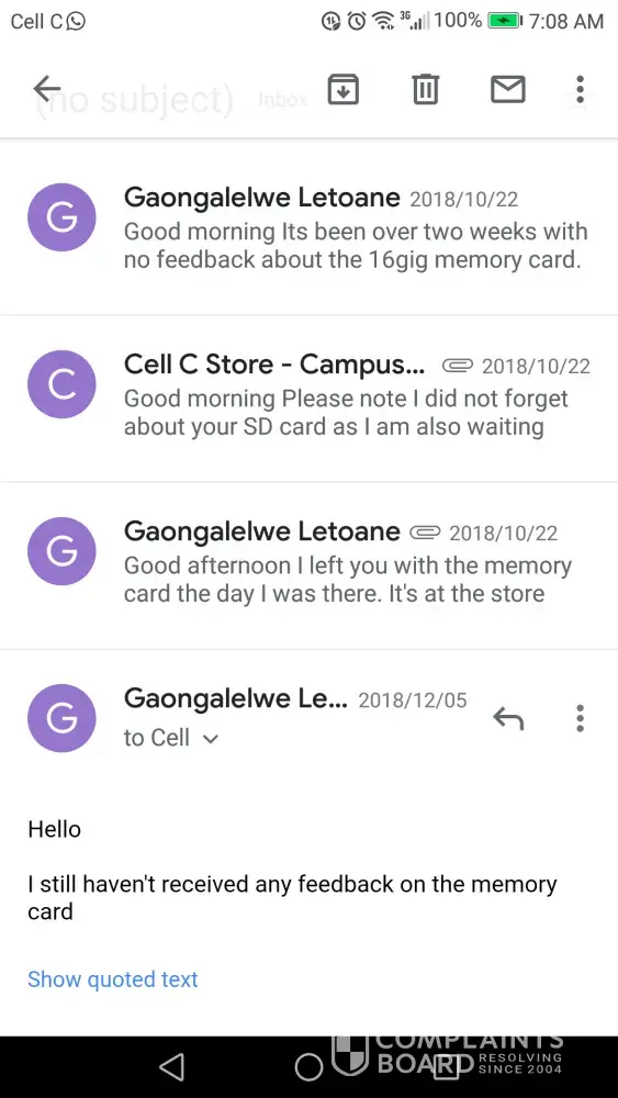 Hello 6 months ago I bought a Y7 on contract at cellc store in campus Square, the same day I realized that the 16gig memory card was broken I took it back to the store. The guy who was helping me just took it in & tolde he would be in touch. 6 months later I'm still waiting & chasing after them & now they even make it sound like they doing me a favor by even giving me another memory card when they didn't even bother checking if everything was okay when I bought the phone. I've spoken & contacted the manager a few times with no reply whatsoever I've been ignored as a client & cellc has failed to deliver the full promised package of the contract & signed. I'm really not happy at all with the custom service there. It's poor & they are too comfortable