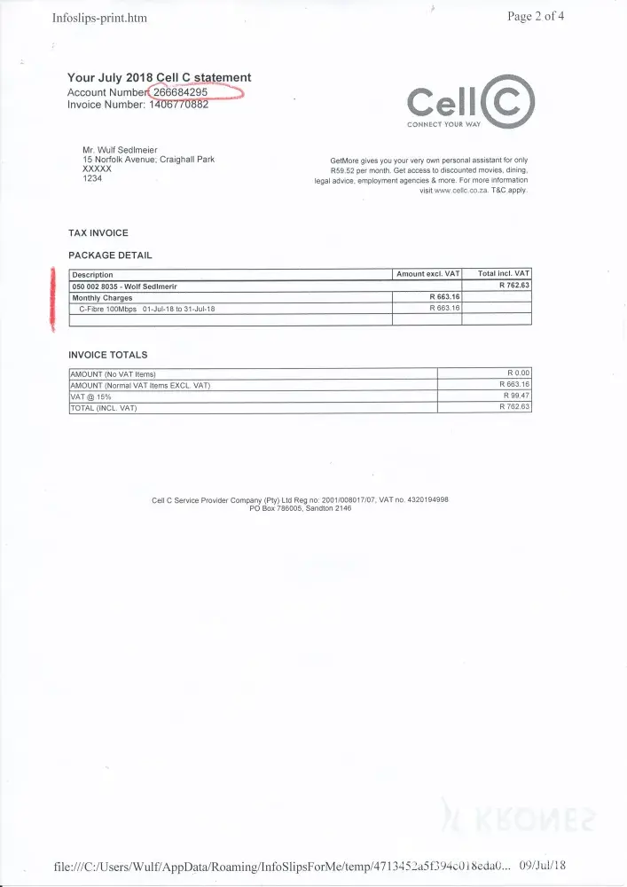Cell C's fiber/IT service creates two different accounts for one and the same service (i.e. Internet connection). Based on the duplication of accounts they charge twice for the same service. In addition, one statement shows a higher invoice amount than the actual invoice. The amounts are then charged to me via bank debit. Clearly there is no oversight as to how accounts are handled (or is there a more sinister reason?).