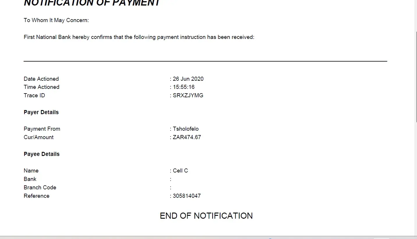 I have paid my account in full; you guys listed me for the account. I have sent numerous emails to Cell c, with the proof of payment and still you messed up my credit score.