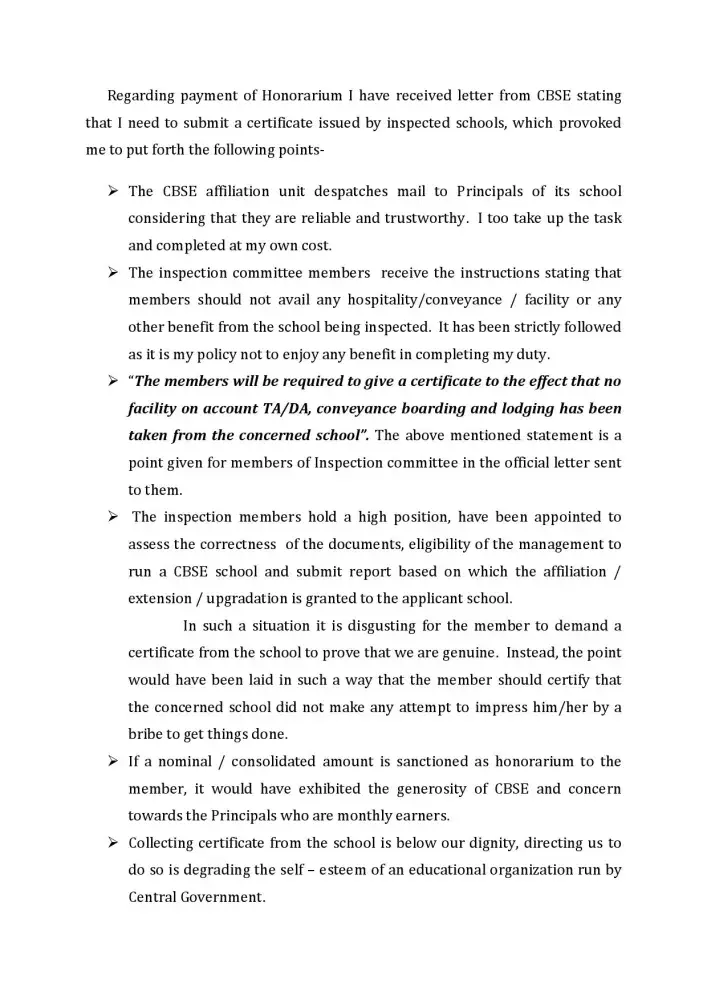 The principal of few CBSE schools are asked to inspect the schools. The reimbursement of expenses incurred by the principal is getting too delayed and the CBSE is demanding to get certificate from the inspected school to prove the genuineness of the Inspection member, which is disgusting. It is below our dignity and too embarassing to do so.