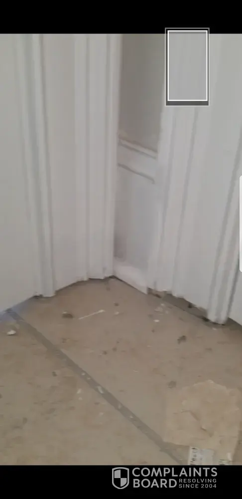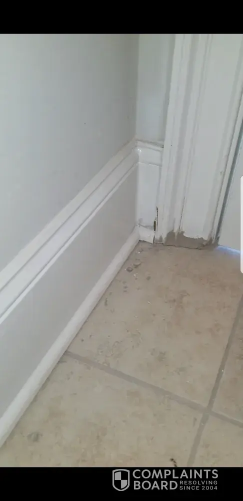 They painted over water damage I. The bathroom ( have video footage). We were told that there would be all hardwood flooring down stairs, yet there's carpet in the family room as well. We are living in a hotel that is becoming expensive.