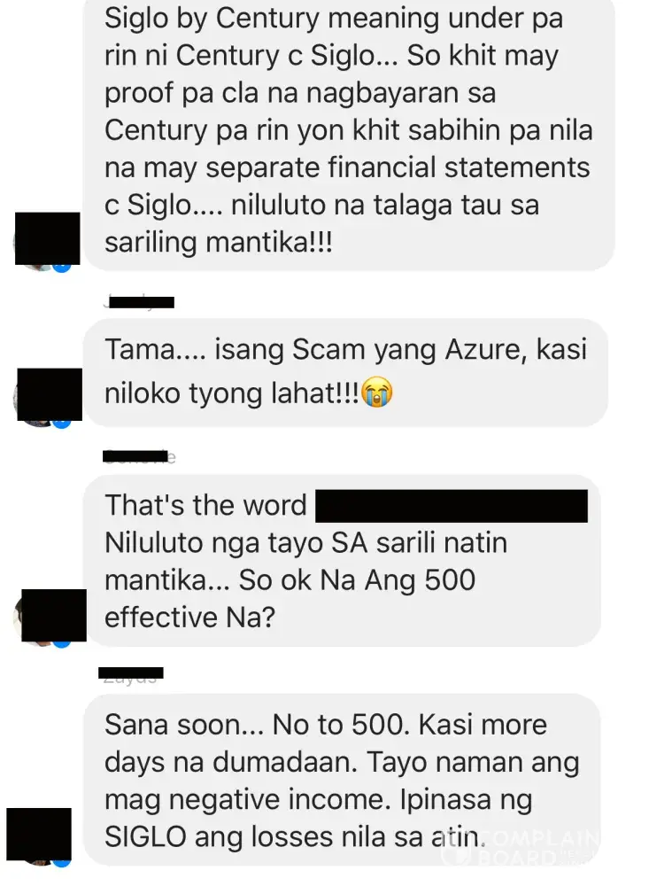 Hello po sainyo. Im Katrina Im an ofw from uae. I just recieve a call from one agent of Century properties he was asking for a meeting for the proposal of investment.. Actually this is the first time I heard about them I worked in a real estate company bfor in the phil pero short time lang like about 5months but i learned some of the in and outs of this kind of business. Good thing I researched this company nakaka bahala po ang complains nyo good thing I found this site. Hoping na sana in time ma settle na po yan. Maraming salamat and God bless u all.