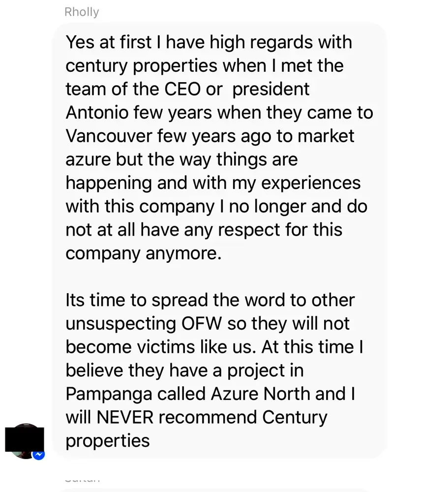 Please let your friends/relatives know about century properties being one of the worst developers in the philippines.