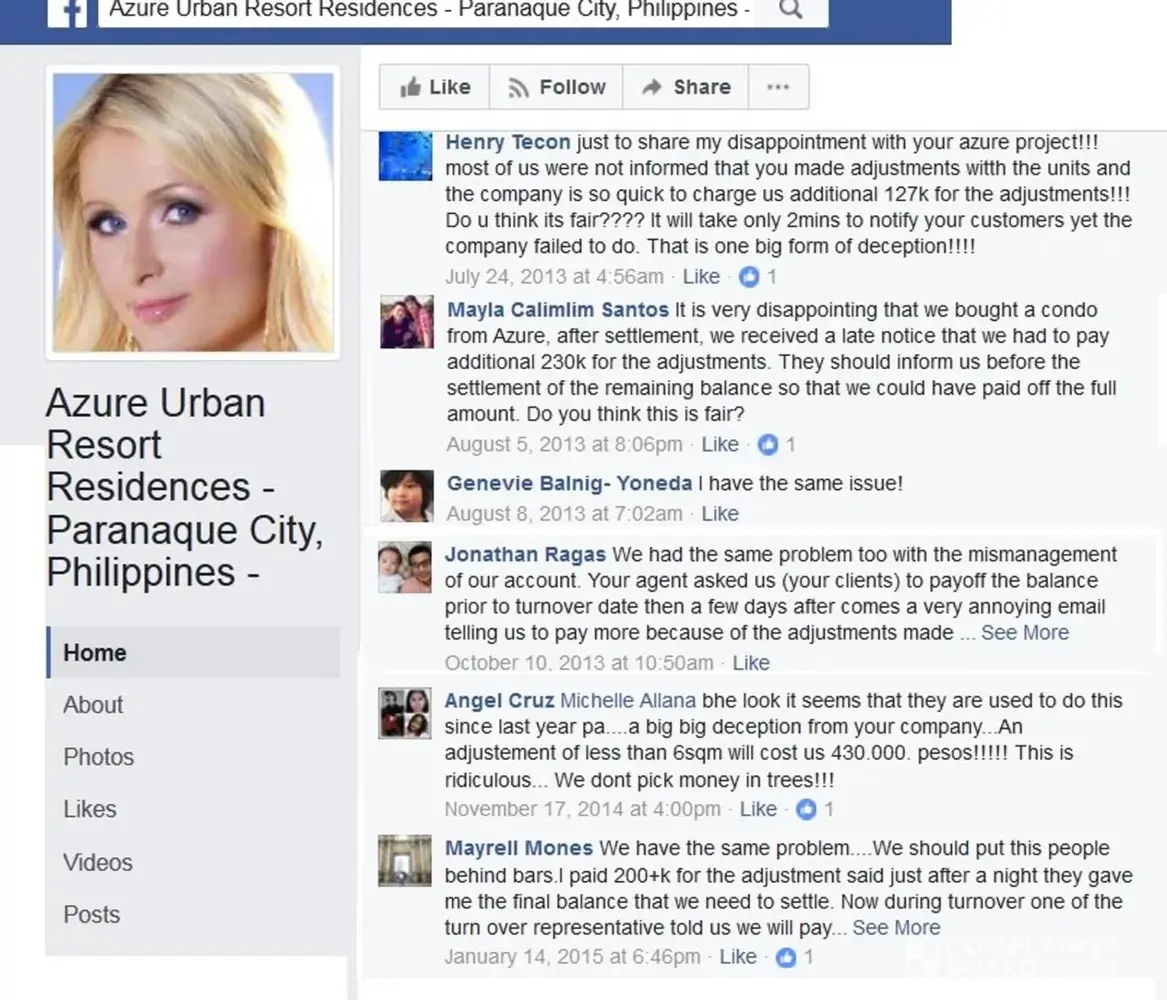 Century Properties takes pride of their global partners and celebrity faces endorsing their business but as the author mentioned DO NOT BE LURED IN THEIR AGGRESSIVE AND MISLEADING SALES APPROACH. Our family was placed in a bad financial situation soon after they turned over our unit in Azure almost half a year early. We are based abroad and liked the idea of having a vacation house when we go to the Philippines and the amortization schedule presented at that time was feasible to us. With their hyped videos on Youtube and regular updates on how they were constructing the buildings ahead of time of course we were excited to see that our vacation place will soon be ready.