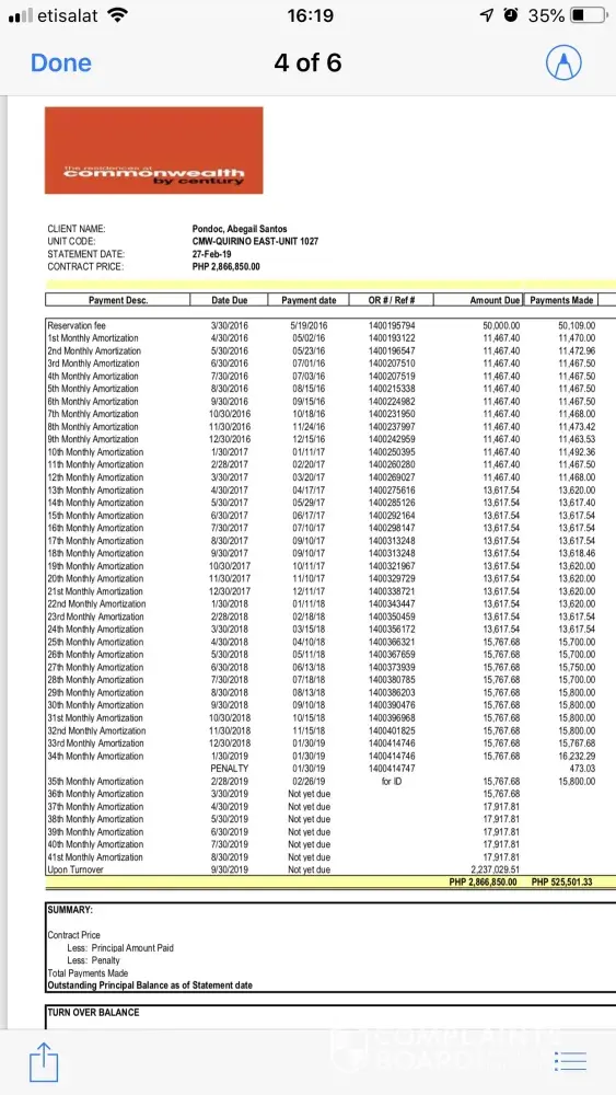 One morning I read an email informing us that on a certain date the unit is ready to be turned over and of course they demand the entire balance to be paid. I think these people think that OFWs are planting money on the ground and prepared to pay 1.7M on the spot without respecting the amortization schedule given by their sales agent! I pleaded and presented my case that it will turn our finances over, I asked that they allow us to follow the amortization schedule presented by their sales agent until December then we will secure a bank loan. The only response that I got was to pay the remaining amount otherwise penalties will be implemented. To make matters worst, they have "extended" our unit by a few meters that of course involves more money.