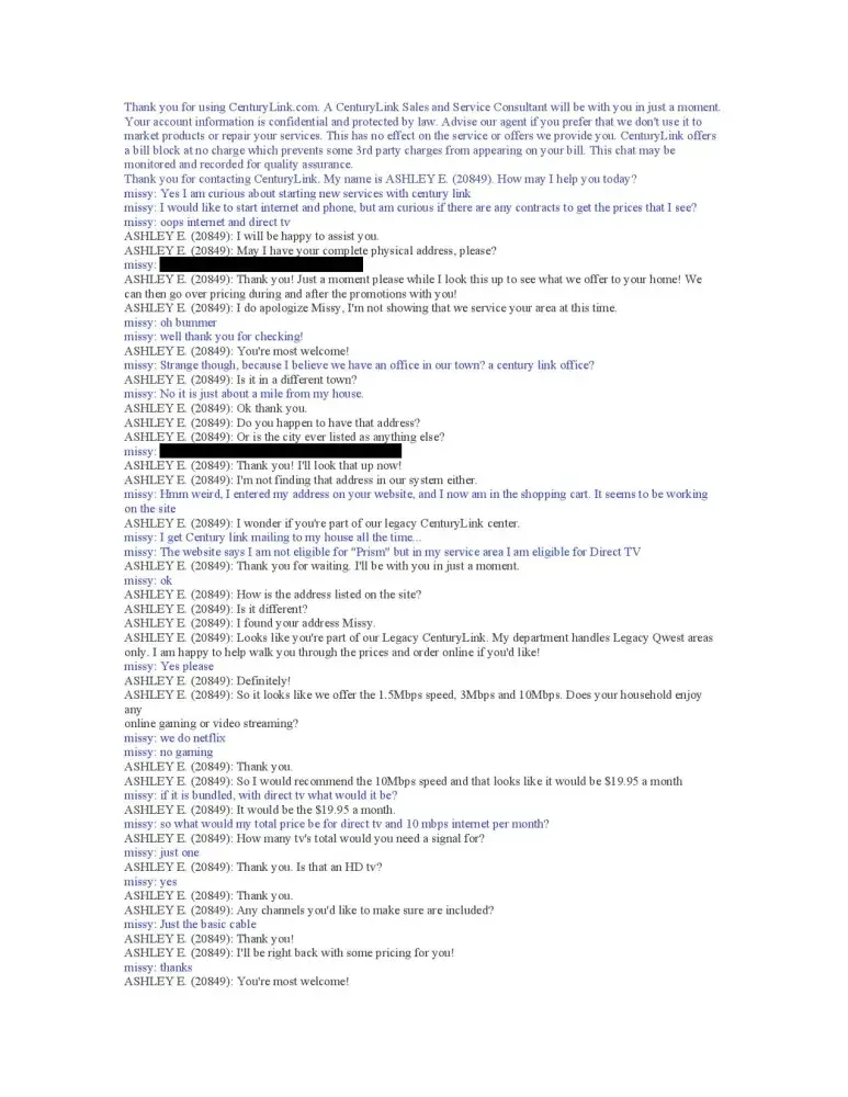 Both of these companies have had horrible customer service, but I place the blame on Century Link, as they were the company that quoted me the rates I was supposed to receive. My advice is to steer clear of Century Link! I have attached the chat window of the conversation I had with the Century Link representative.
