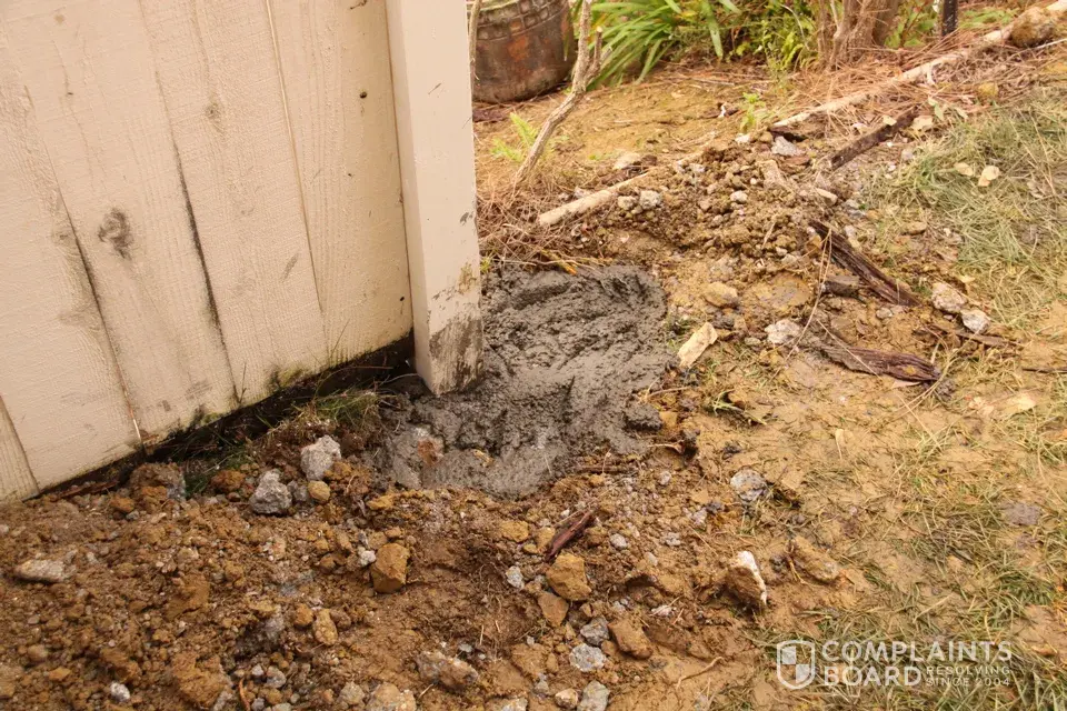 When we came home and saw our yard trashed, we promptly notified the neighbors who brought the foreman over the next morning. He agreed to make changes and let us see the fixes before the fence was reinstalled. We asked him for a business card. He said he didn’t have one on him but would get one. However, while we were gone from 9:15 AM to 10:45 AM, Certapro once again came on our property without authorization, covered the cement with dirt, put back the fence and, in the process, cracked most of the boards on our side, including the two new posts. In addition, they not only failed to re-install the bottom rails but took them without our approval. Meanwhile, the foreman left the premises and didn’t leave a business card. When we pointed out our concerns to the site supervisor, he gave us no contact information but said they’d be back Monday. They never returned.