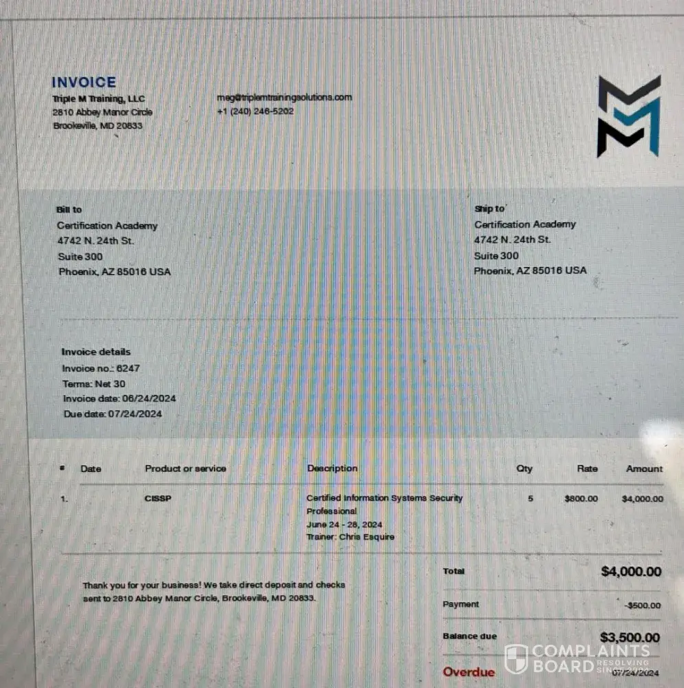 I had some issues with this company that made me want to complain. First, I paid for a class in January that was supposed to happen in DC in early March. I went there and checked into a hotel, but they called me later that day to say the class was cancelled. Cancelling the class in less than 24 hours was not cool. They rescheduled for the following month, but due to Covid the class got rescheduled a few more times. Second, Covid hit me and my family hard, so I asked for a refund since I'm not sure I can take the class this year and I need the money since I'm unemployed. The support team and management were difficult to work with regarding a refund. They wouldn't make any exceptions for the global crisis. They kept trying to talk me out of a refund and said maybe they could give me a partial refund, but never followed up with more information. They never got back to me on this and I had to initiate the conversation again. Third, Certification Academy would send me information or confirmations for the wrong class. This made me lose confidence in their organization and competence.