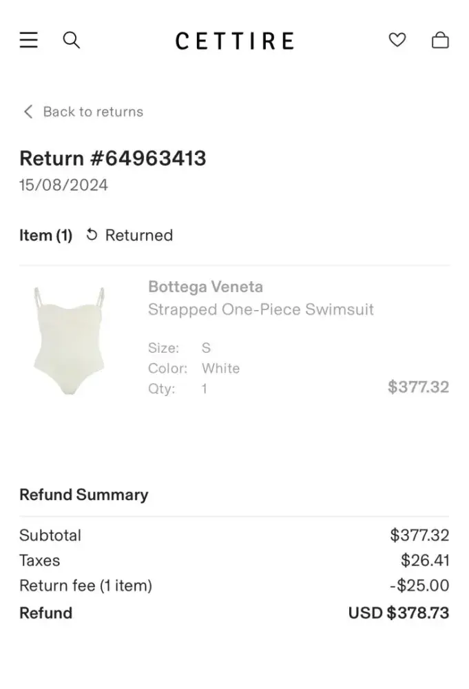 I bought expensive shoes on Cettire, they sent me tge wrong size. I immediately returned them following all the instructions. Cettire received tge shoes, accepted them but never refunded my money! They refunded $25 instead of $777! It's been 3 months of emails, and they just don't refund my money! Don't buy anything there!