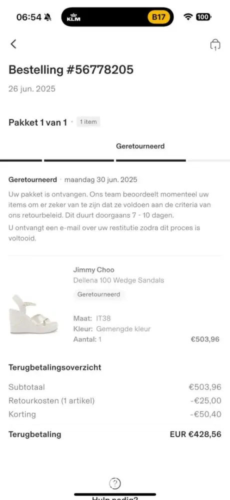 We ordered shoes (size 38) on 20/06 which was delivered on 25/06. Upon receiving the items, my wife wanted a size smaller (size 37) and returned the shoes. These arrived on 30/06 at Cettire.