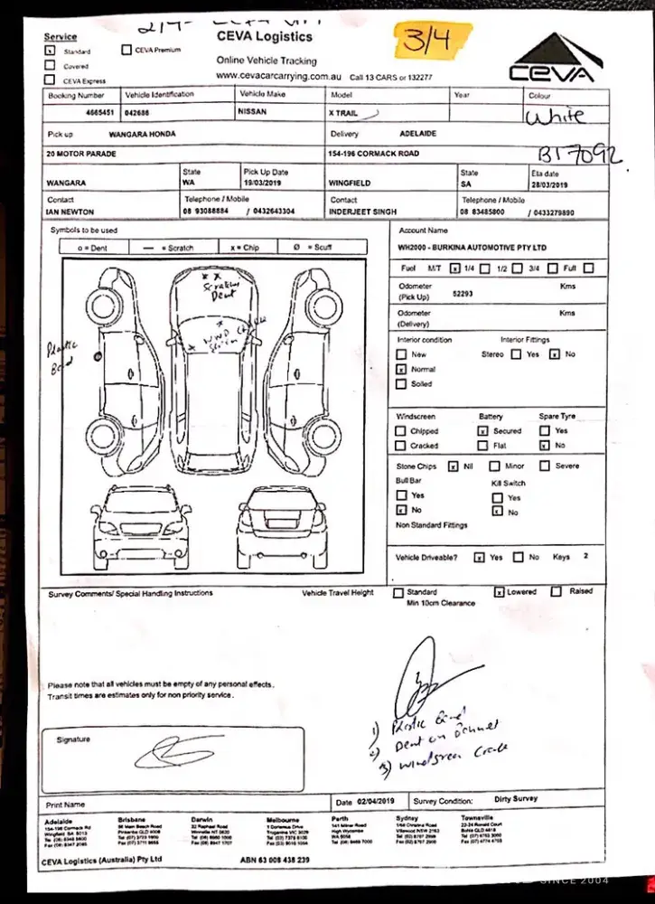 I purchase car from Western Australia and transport to South Australia. I mentioned booking details above. The car was delivered to Wingfield Depo on 3/4/19.