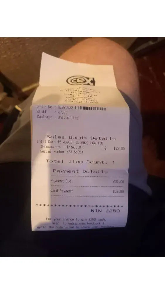 I tried to sell my Geforce 1060 6GB Card in the Peterborough branch and was refused as it was too dusty, so I cleaned the product thoroughly, tested it in two computers, and then took it back in, this time they claimed that the card displayed nothing, a blatant lie, or error of the tester. After returning home and connecting it back up into one of the computers, it works just fine. I then video proof of it working and returned to the store, after a LONG wait in the queue, I was flatly refused even a test "because it failed the test yesterday". The fault is not the hardware, it is undoubtedly a poorly trained tester.