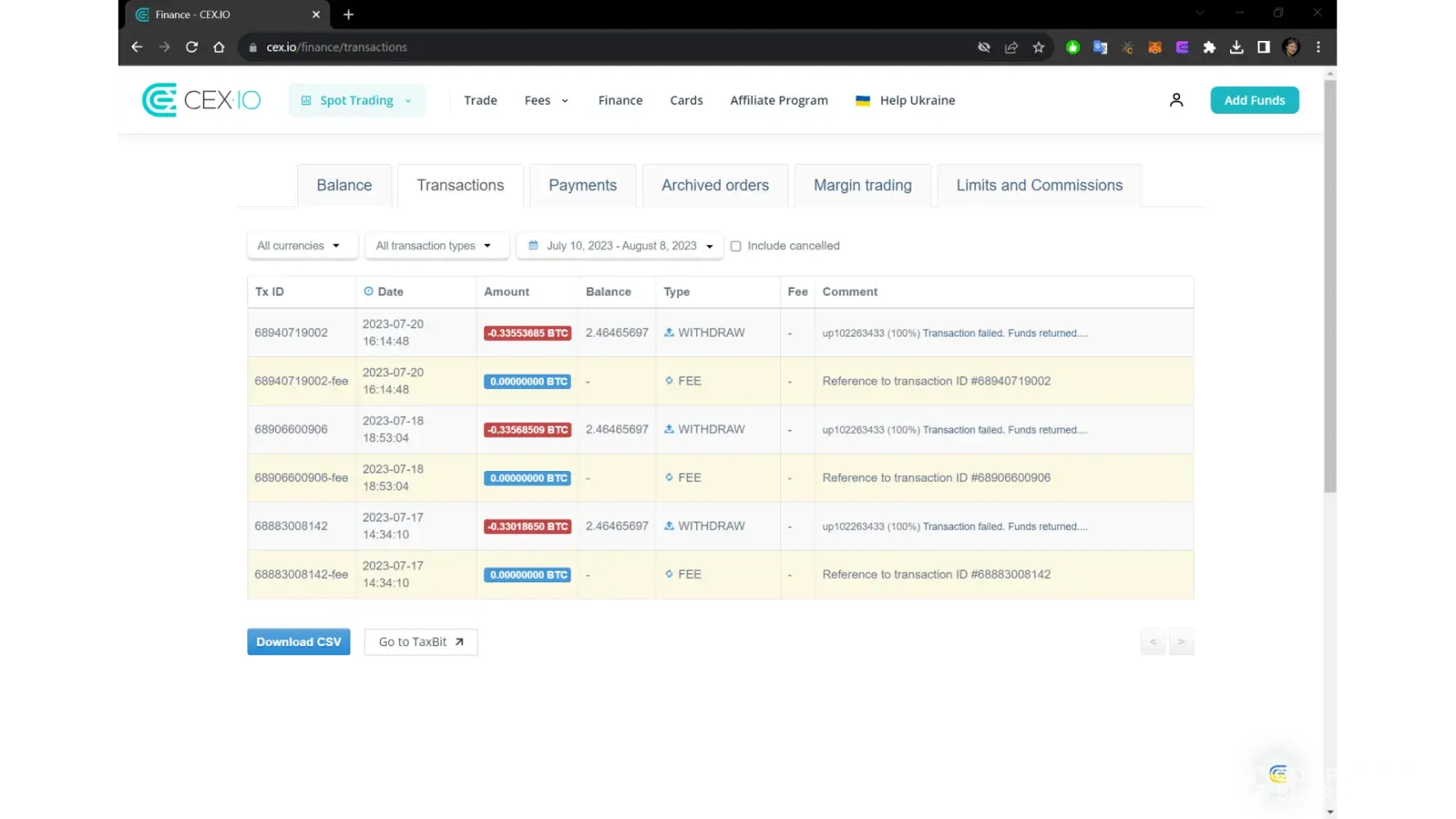 Every single transaction I made on cex.io was depositing crypto selling it and sending it to my bank