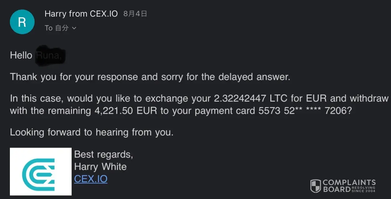 Cex.Io holds my funds for months after I provided all required documents for verification purposes to them, and since then they haven't been responding at all to my e-mails. For the past three months, I have diligently complied with all additional verification requests and have submitted all the necessary documents as per your requirements. However, my...