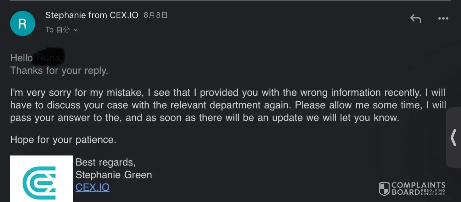 Desired outcome: There is no outcome since 1.5. I demand support reaching out to me with positive feecback, let me withdraw my savings and delete my account on cex.io