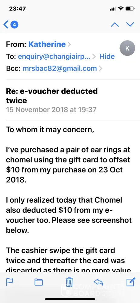 I only realized on 15 Nov that Chomel also deducted $10 from my e-voucher too.