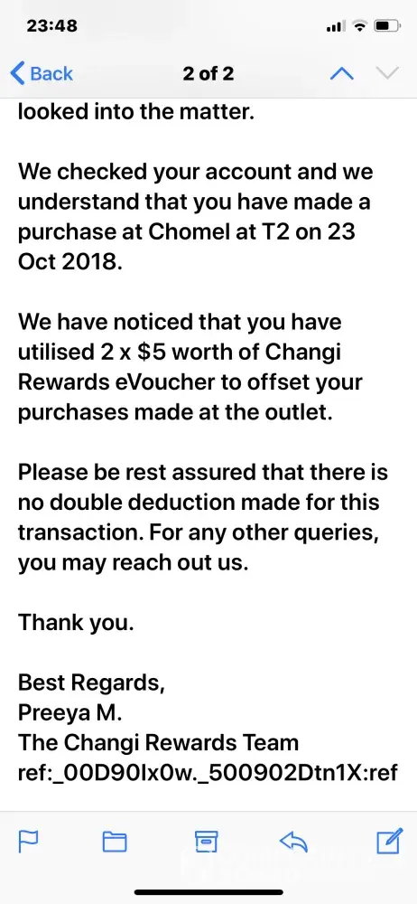 I am truly disappointed in the world best airport inefficient Changi rewards team that takes 20 days to respond to my feedback and gave me a desultory investigation result.