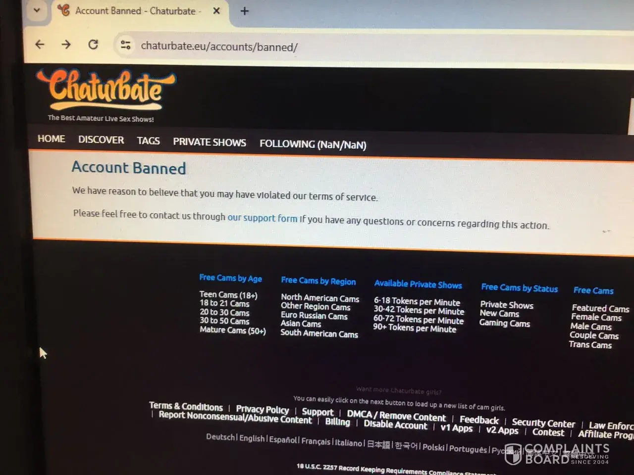 Overview of Chaturbate complaint handling