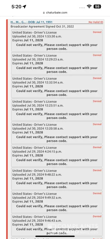 I have tried a million times now to try and talk to an actual person and to get my ID and age verified. I have been streaming with Chaturbate for 3 years now and I have never had a problem with anything until now. And support has been absolutely no help whatsoever. I have submitted a clear picture of my brand-new ID when it came in the mail as requested. I...