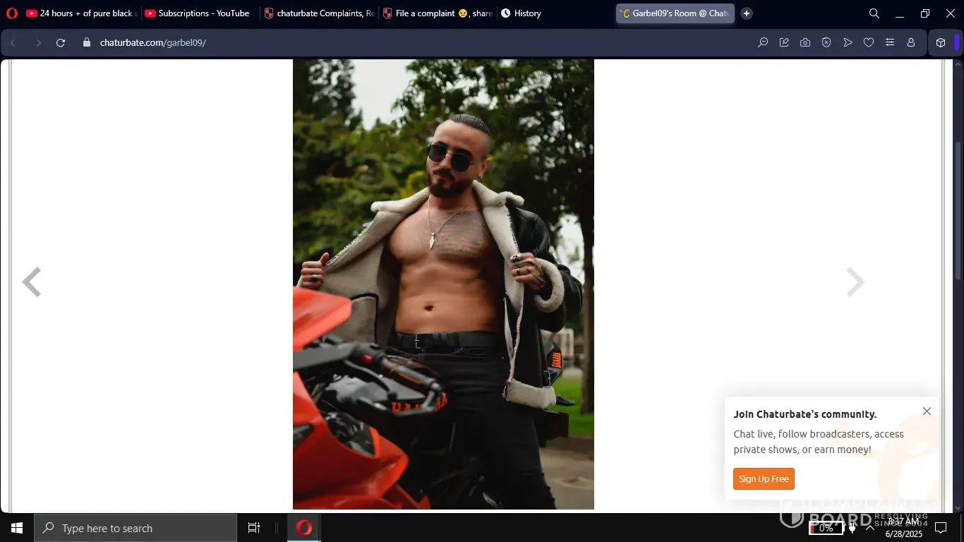A Columbian Cartel Model model with nearly 20,000 subscribers (Garbel09) was promoting himself in my empty room. I wasn't in a very good mood as I'd already wasted 4 hours staring at two grey bots. So I go into his room (where he was choking the chicken to an audience of thousands) and told him to knock it off, then banned him. Directly after that...