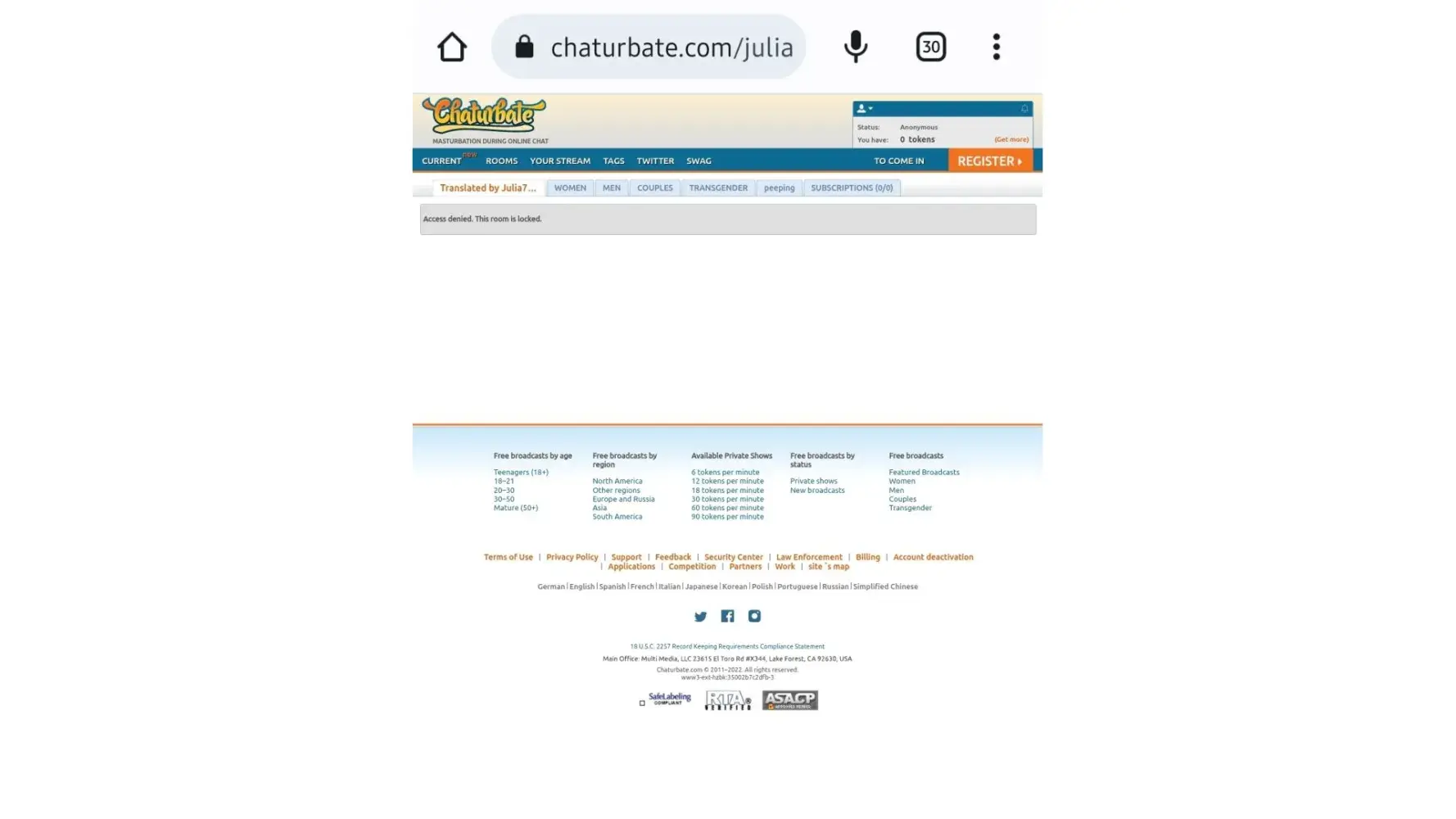 Here the USPS tracking on the mail carrying M.O. (https://imgbox.com/5kHb0ywy) If one knows how USPS works on Aug. 22 2022 it was in the mailworkers delivery route. Either that mailworker stole it of it was delivered and chaturbate is not processing it. But this long wait has my promises to pay looking like a month-long lie. One chatroom's model I got along with beautifully and on my IOU had 600 tokens for her (she doesn't appear naked but I thought that made her more special) all of a sudden reads some report on her screen stares at me like I'm a killer (her eyes burning through my soul look) accuses me of spamming and next thing I see is banned.