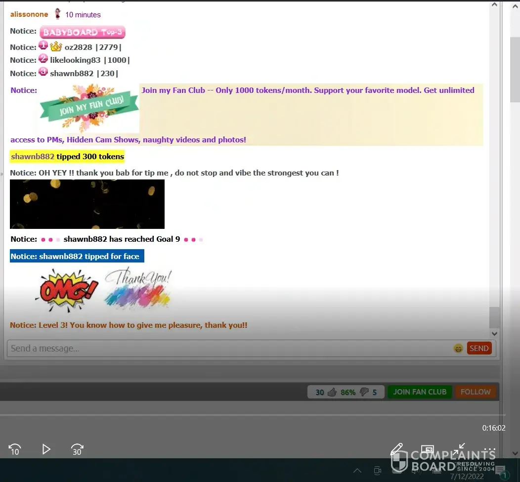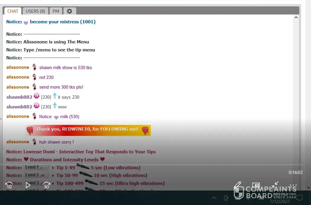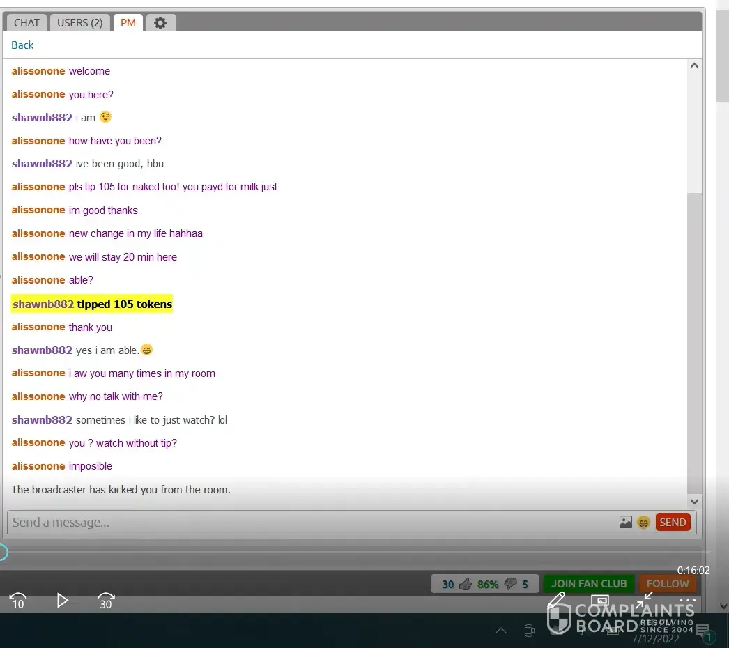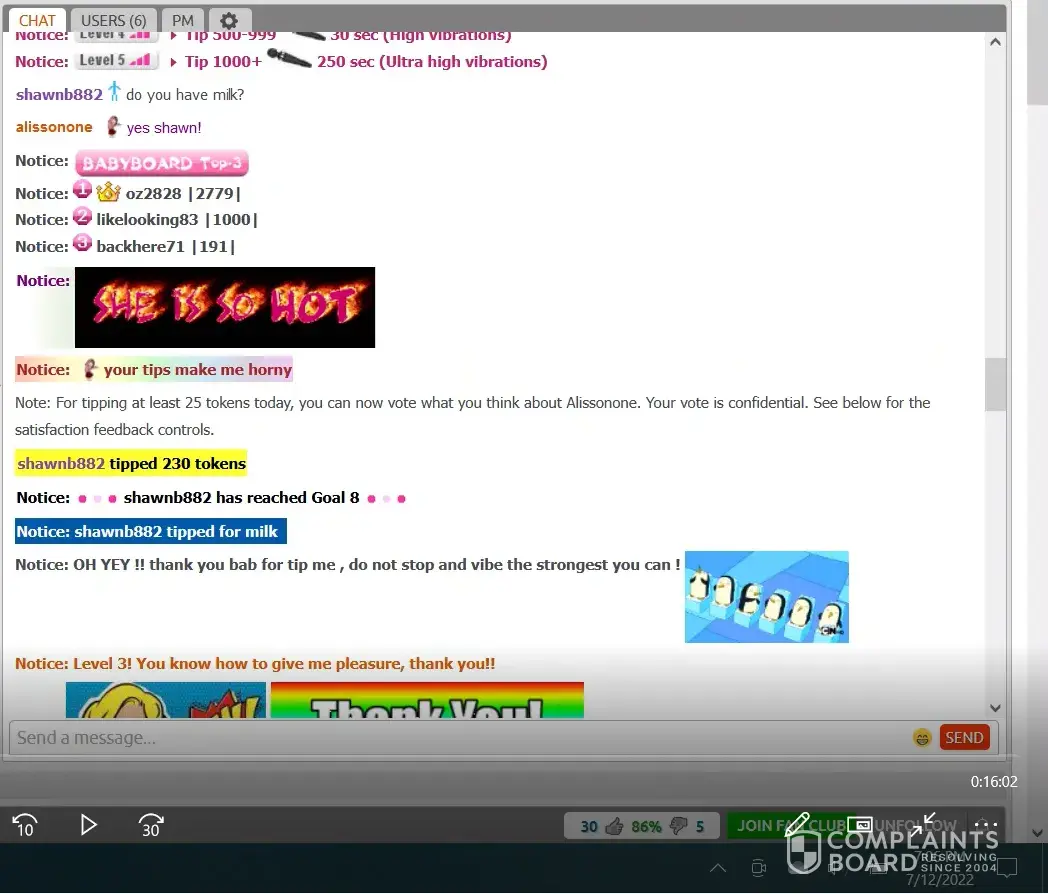 They allow someone to open an account and conduct themselves improperly. I attempted to assist Chaturbate by providing evidence of the alleged violation and I get banned for that effort! In what way is that fair?