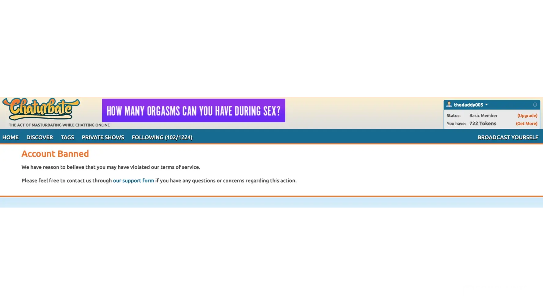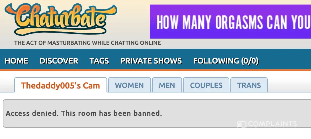 Desired outcome: Banned on chaturbate