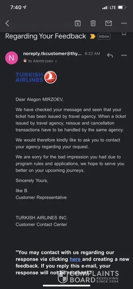 Turkish airline representatives in dushanbe blaming cheapoair. They provided us with official answer, saying that changes and cancellation can be done only by travel agency and reissue and cancellation can be done only by them - in this case by cheapoair.