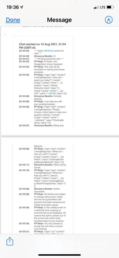 The following morning, Tuesday August 10th, I started a chat discourse on the CheapoAir website. I did this instead of a call because I wanted everything in writing. The chat lasted approximately 3 ½ hours with no resolution. Once again, I was asked why I did not get on the flight - and once again I asked, "Would you leave your son behind?!" At least this agent agreed that he would not. The agent was not able to reach anyone from Delta Airlines so he said that the CheapoAir Waiver Team would contact me in 3 - 5 business days.