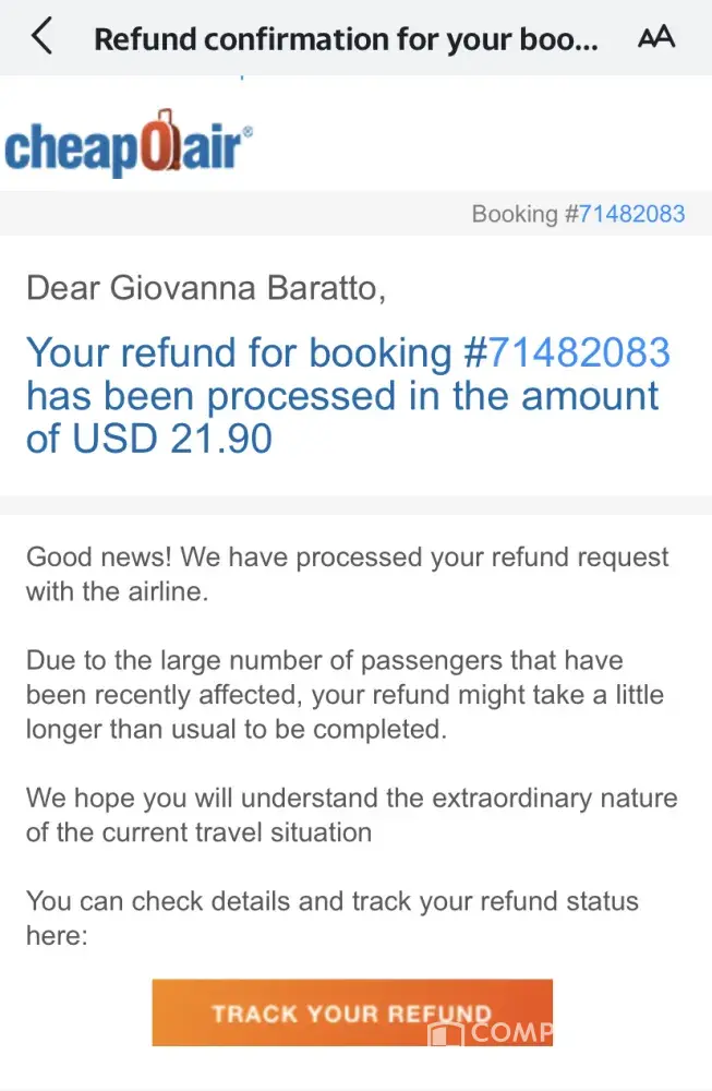 Unable to get Refund from Cheapoair