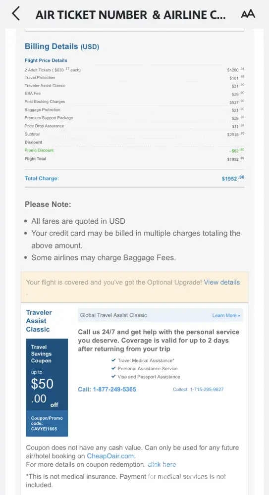Desired outcome: Reimbursement of all charges by CheapoAir at the very least! CheapoAir needs to find a way to compensate for the emotional distress you have caused!!!