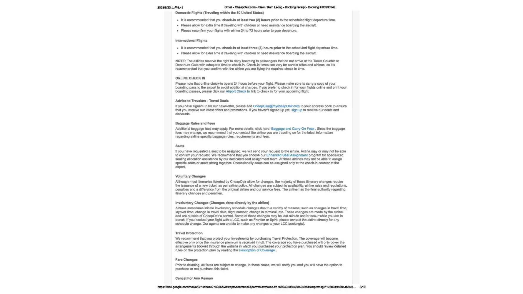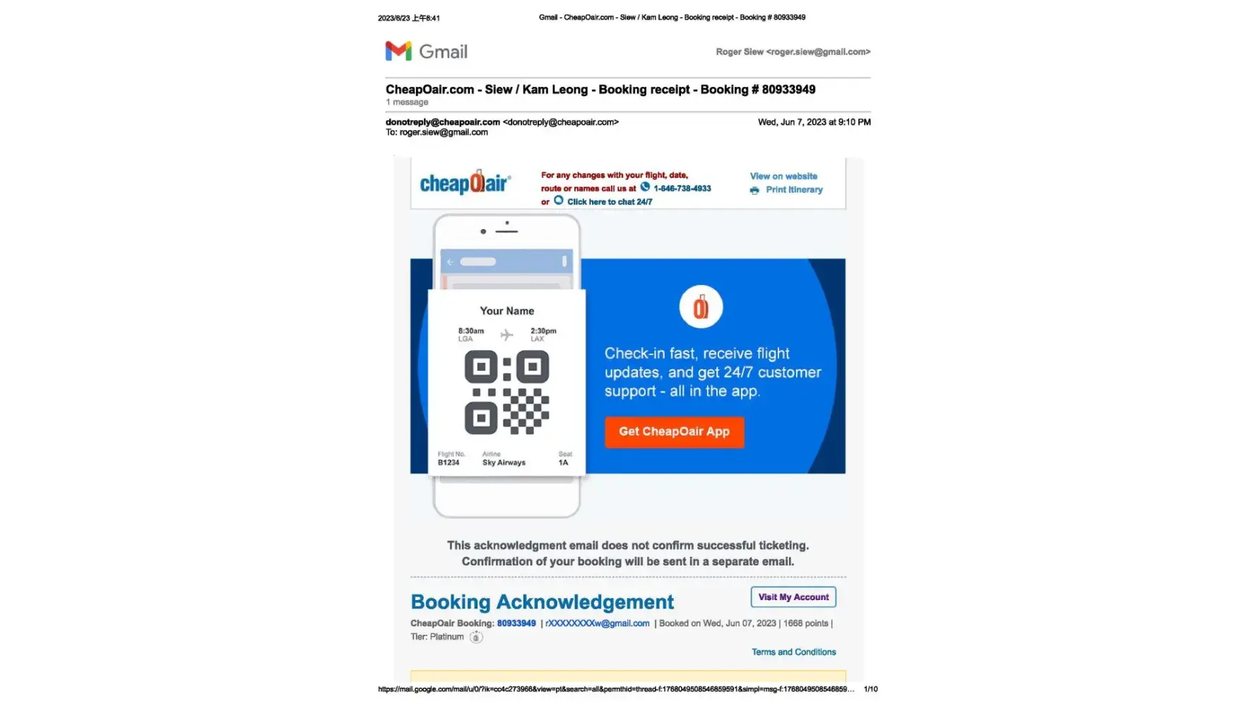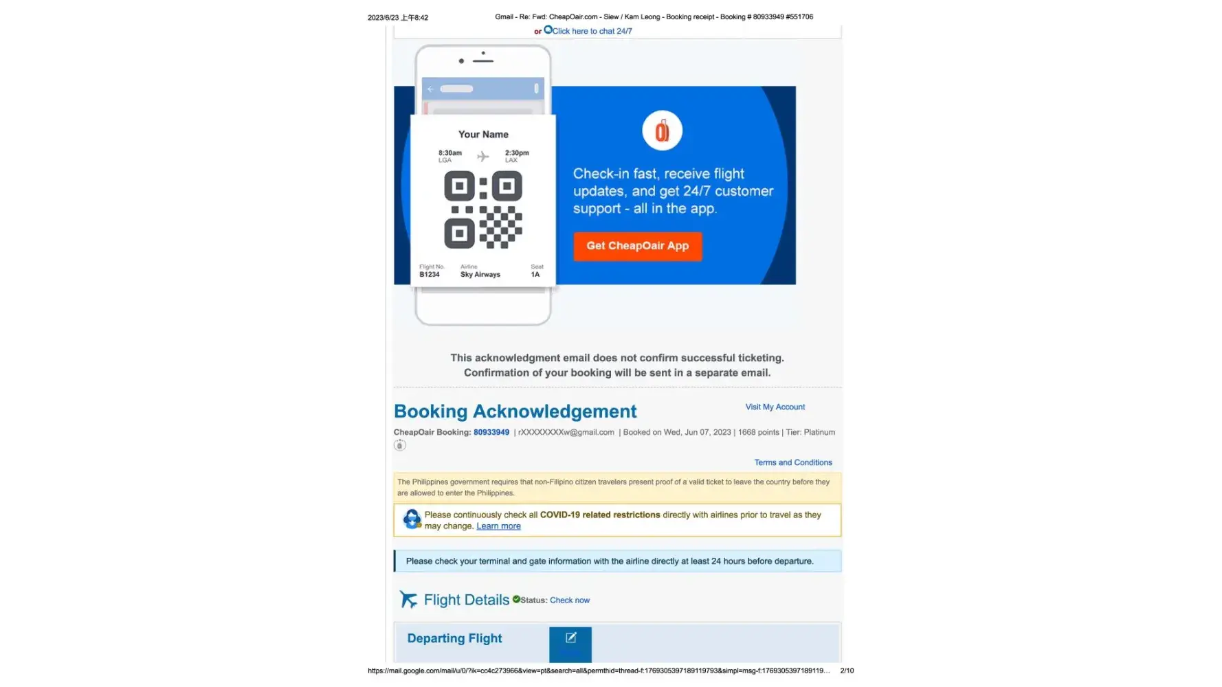 CheapOair.com Booking # [protected]