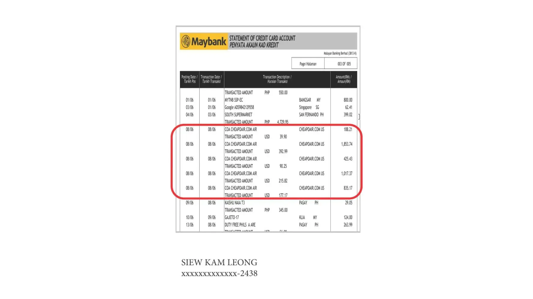 I then got on the phone with Cheapoair on the 16th of June to inform them that the bank has confimed the payment and to provide them further documents like the proof of payment as well as a bank statment of my account to prove that the transaction was no longer pending but in fact paid out successfully, this also included the transaction information and dates of transactions as a normal proof of payment would.