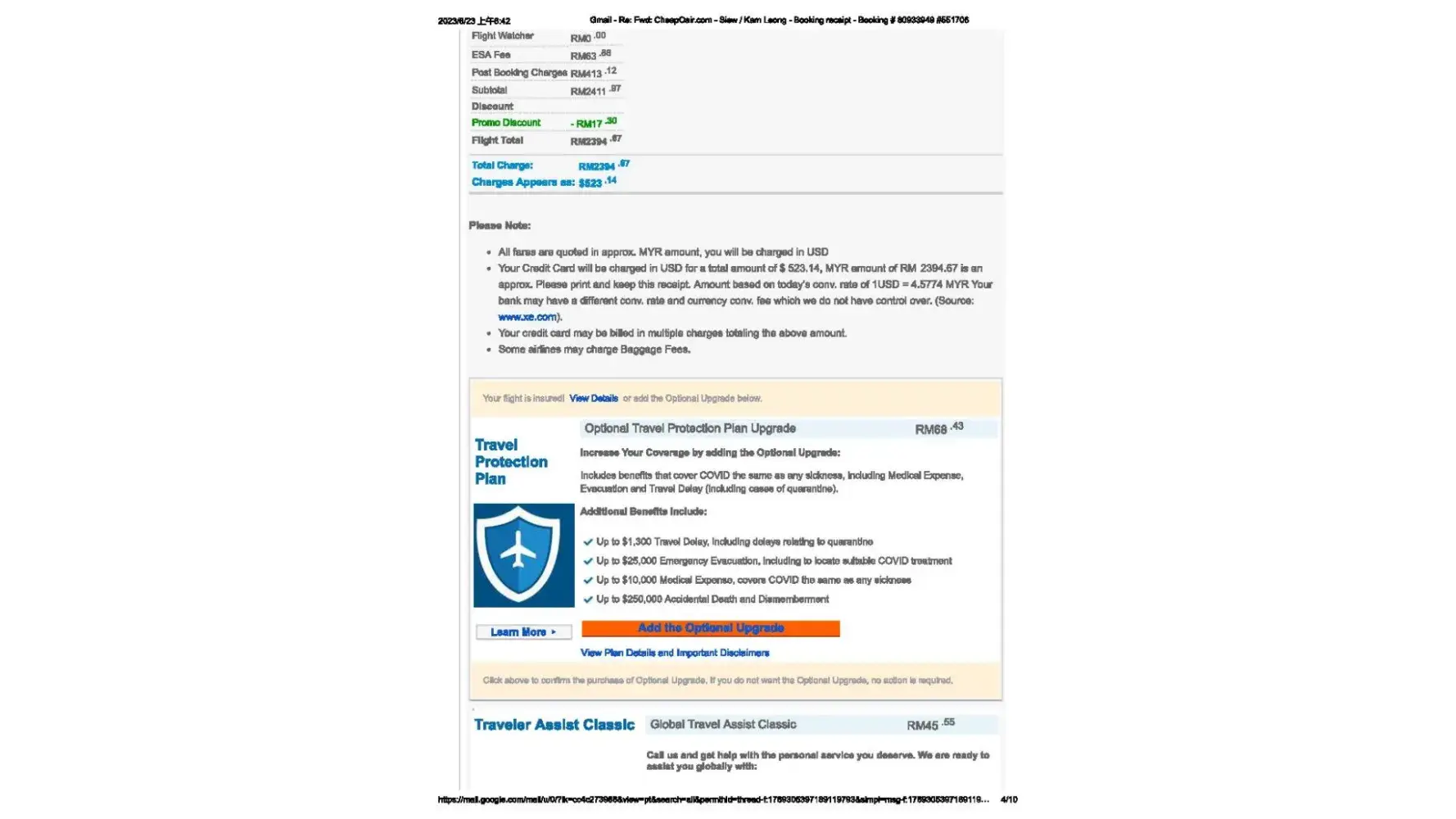 Original schedule Departure-Return flight is: MNL-KUL, 08-Jun to 18-Jun-2023, i revised the return flight schedule to Manila from 18-Jun to 13-Jun-2023, the total charge amount is USD 523.14, but i received my credit card showing that it was happen seriously over charge by Cheoair (USD 39.90+392.99+90.25+215.82+177.17=916.13), it is not fair and bid mistake.
