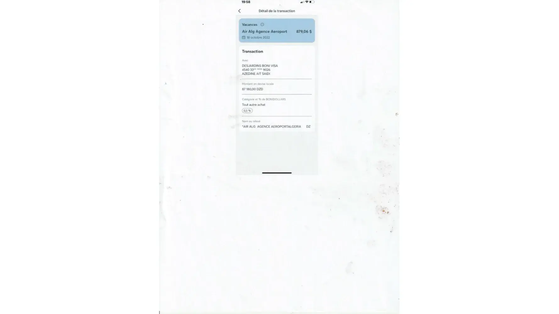 airline ticket purchase