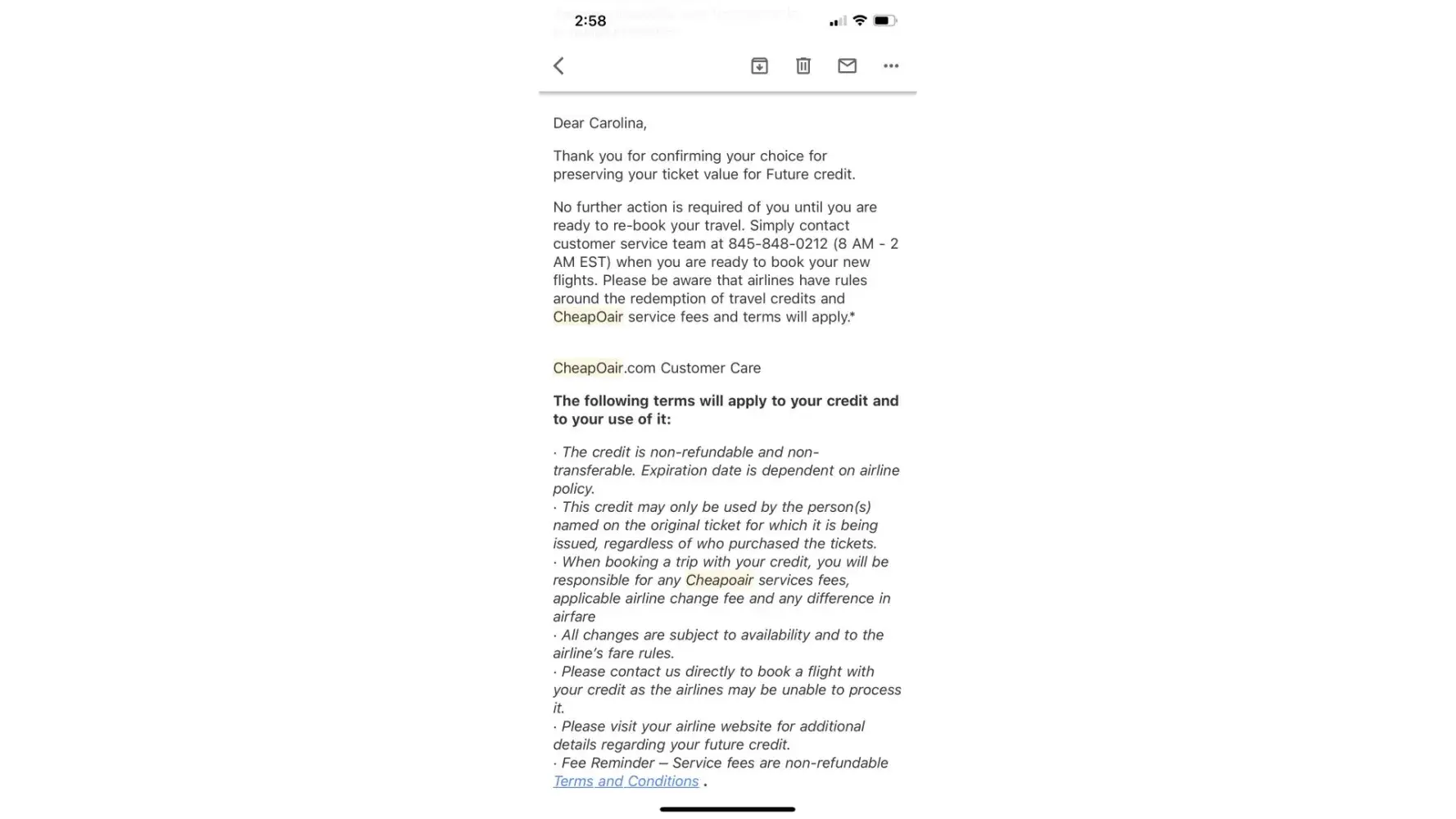Desired outcome: A full refund as no service by CheapOair has been provided.