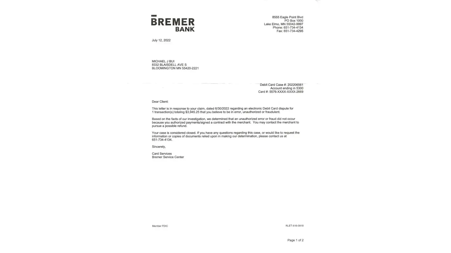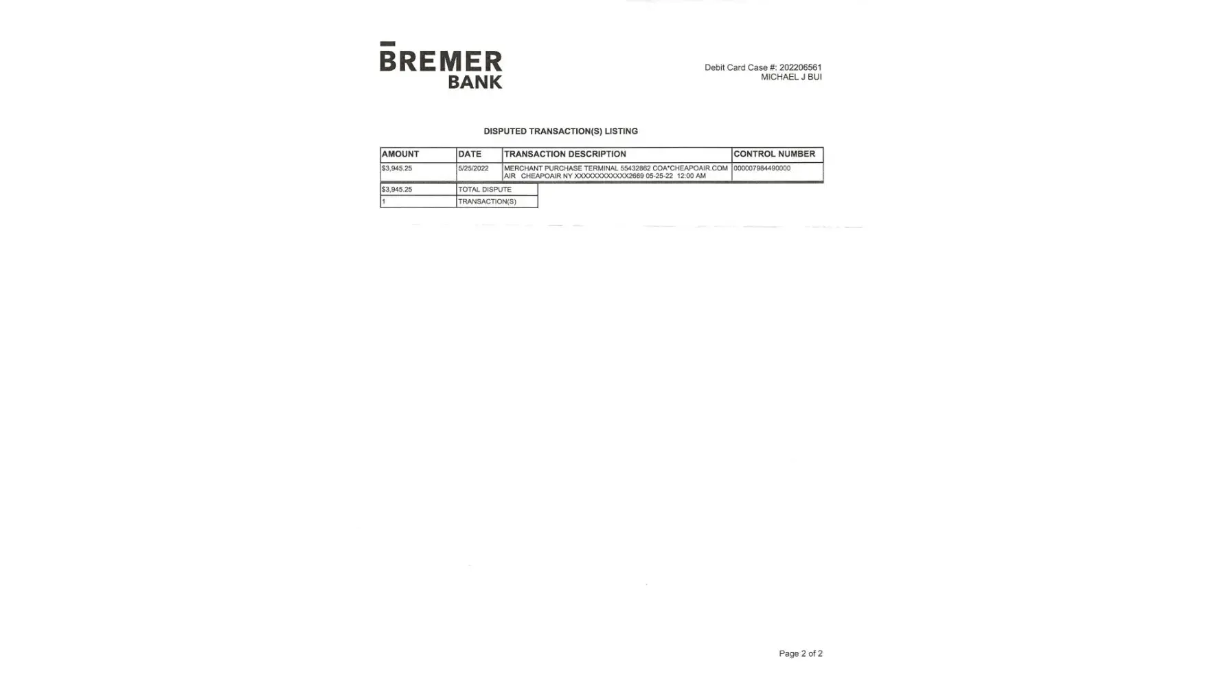 hi can you tell my bank and you help me about my dispute a charge total $3945.25 and i sent you two pieces of papers in this message and you are a named of a defendant i want to sue for $20.000.00 for some reasons and my Bremer Bank knew about this full details i mean your fault for some reasons when you sell a flight package for me without ask me did you apply for visa application form to enter Japan ? or you are no cool for charge my money the amount $3945.25 and i got nothing.